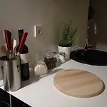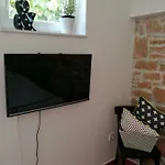 Littel Studio Franceska Apartamento cuenta con TV de pantalla plana con canales vía satélite, chimenea de piedra, además de comodidades como climatizador. El apartamento ofrece 1 dormitorio. Este alojamiento dispone de 1 cuarto de baño con ducha a ras de suelo y un inodoro separado de la ducha, además de secadores de pelo y toallas de baño.